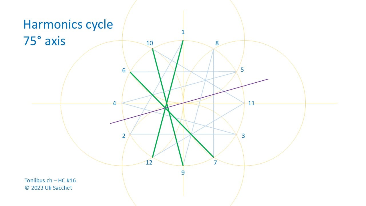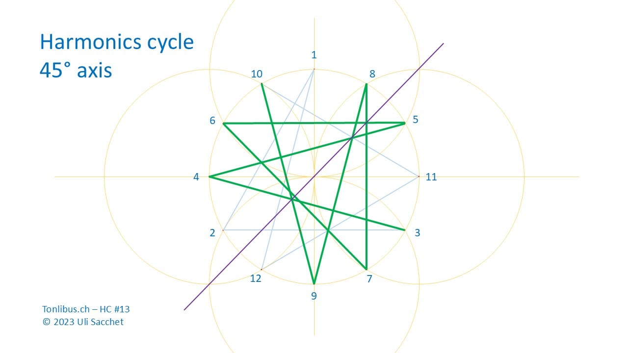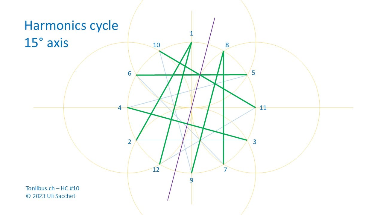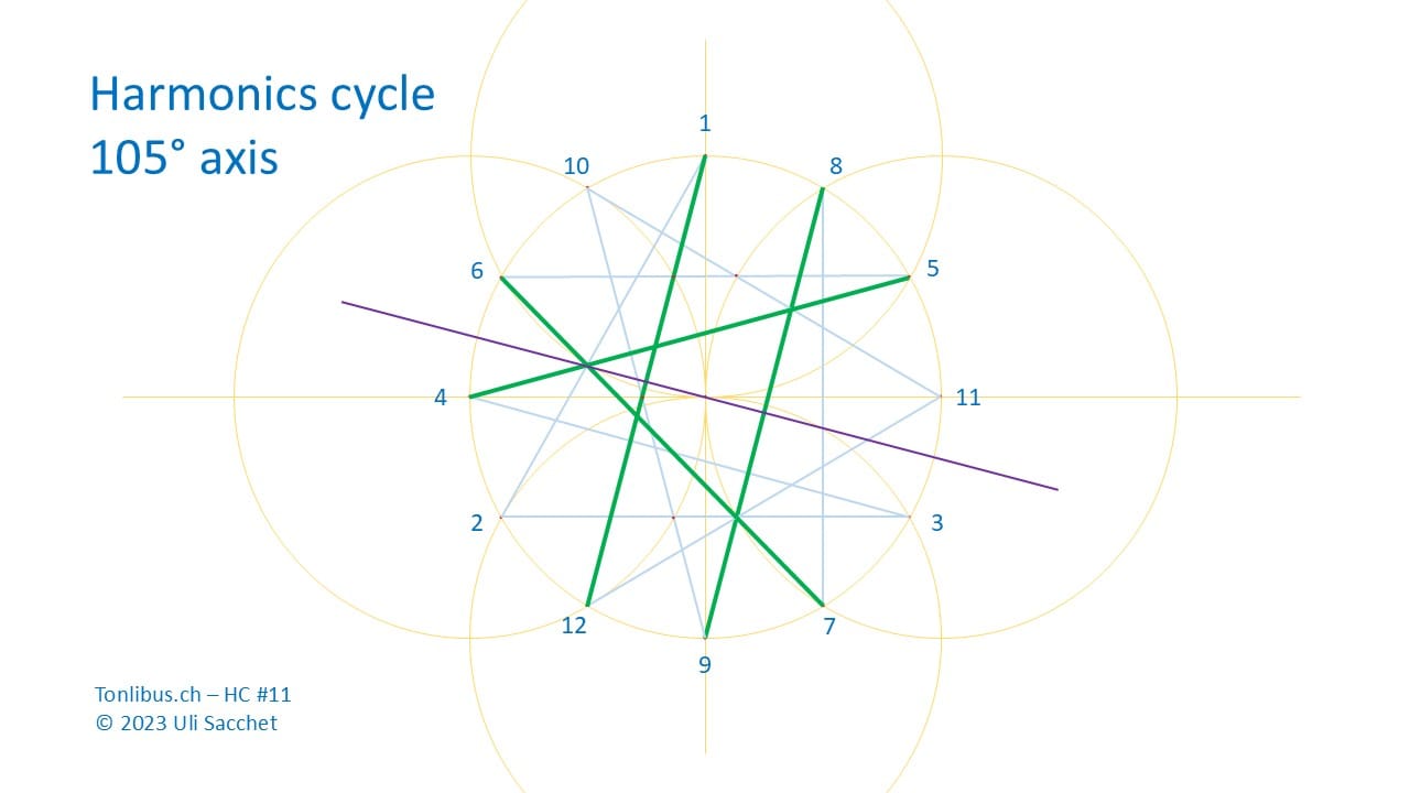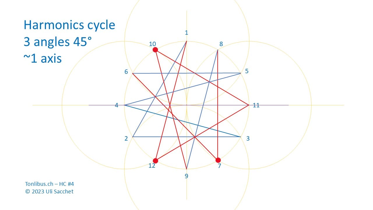 Einige Details zu MixoBal oder HexaNaMix, eine Mixolydisch-Ableitung, finden sich im Beitrag Tonalität des Monats Juni 2023. Sie ist zwar als Ableitung in der Übersichts-Tabelle der Tonalitäten nach unterem und oberem Tetrachord und der Na-Tonalitäten verzeichnet, wird aber als Ableitung im Tonalibus-Katalog von Tonalitäten nicht weiter aufgeführt. Sie führte jedoch zu der folgenden Darstellung des Oberton-Zyklus.